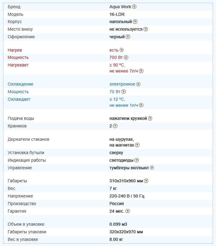 Кулер Aqua Work 16 LDR нап., эл/охл, нажим кружк. (черный)